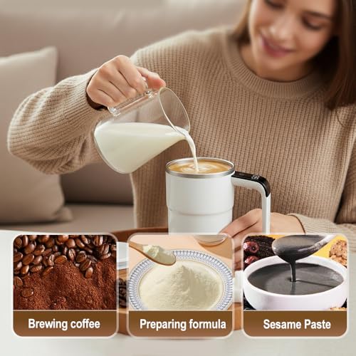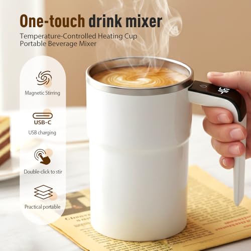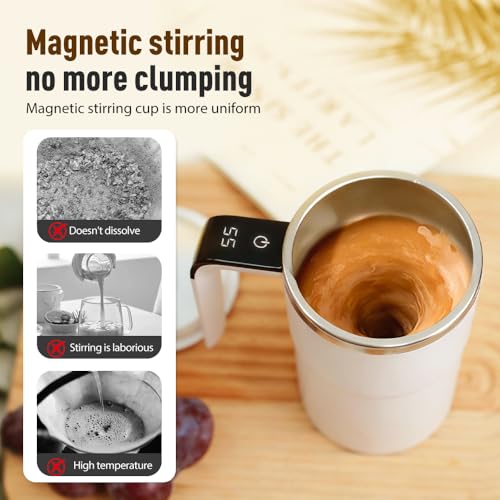 electric automatic magnetic stirring coffee mugRechargeable Long Lasting: Self heating mug equipped with a universal USB-C port for flexible charging from power banks, laptops, or car chargers. Check battery level and temperature with one button perfect for daily commutes, travel or office use.