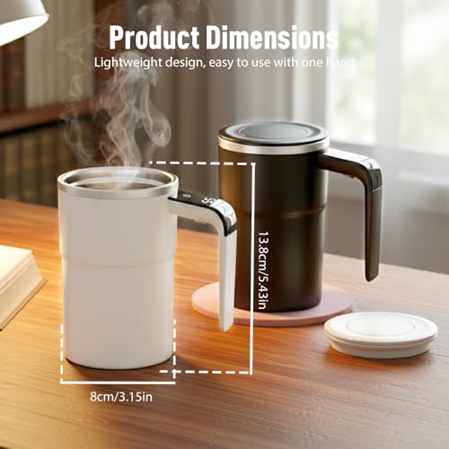 - Ergonomic Design Perfect Gift Idea: Self stirring mug with lid Designed with a comfortable non slip handle.Sleek, practical, and packed with smart features, heated coffee mug makes a thoughtful gift for birthdays, holidays, colleagues, or anyone who loves a perfectly blended drink.